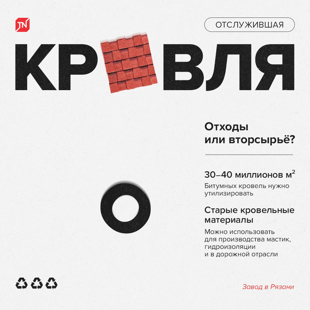 Летом 2022 года на заводе ТЕХНОНИКОЛЬ в Рязани запустили проект по использованию битумного порошка из переработанной кровли при производстве мастик, кровельной гидроизоляции и материалов для дорожной отрасли. Рассказываем, каких результатов удалось добиться и какие перспективы есть у рециклинга. Почему важно перерабатывать, а не выбрасывать Ежегодно в России нуждаются в утилизации 30–40 миллионов квадратных метров битумной кровли. Большая часть старых материалов оказывается на мусорных полигонах, увеличивая их площадь и создавая угрозу экологии. Остановить рост отслужившей кровли на полигонах можно только одним способом — перерабатывая её, а затем повторно используя в производстве других строительных материалов. Ещё один плюс переработки — экономия ресурсов. На создание продукта с добавлением вторсырья требуется меньше энергии и воды. Почему переработка до сих пор непопулярна Первая причина — отсутствие инфраструктуры. Процесс сборки, сортировки и логистики не отлажен. В России всего т