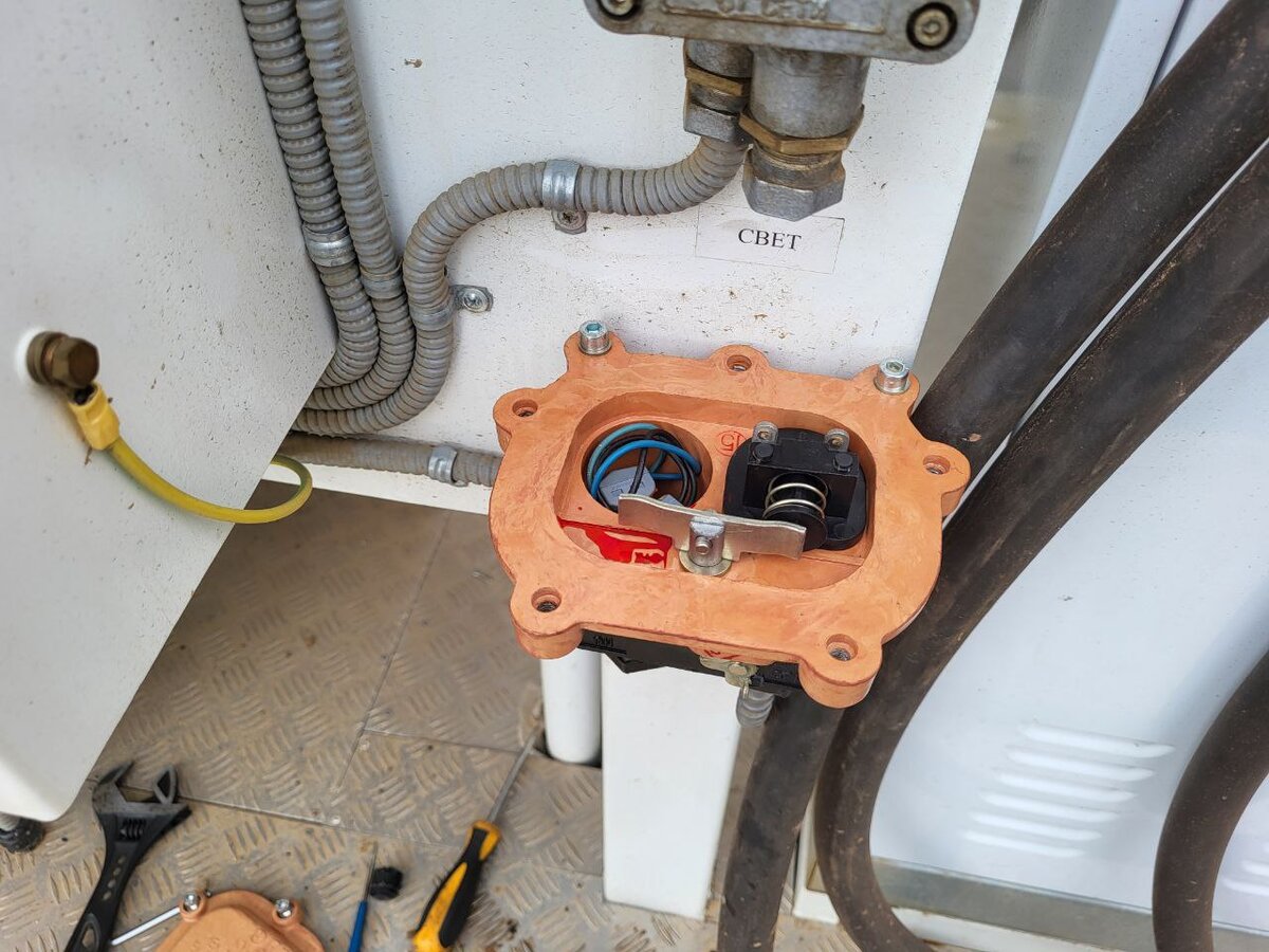 Лучше предотвратить, чем ремонтировать. Так можно описать одну из главных целей сервисного обслуживания. Оно помогает избежать серьезных поломок и обойтись только мелким ремонтом. Именно такой подход к обслуживанию заправочных станций имеют мастера компании АЗС Ментор. На каждом объекте они тщательно проверяют работоспособность оборудования. Обнаружив неполадки - устраняют их. А когда выявляются серьезные поломки, специалисты в кратчайшие сроки стараются отремонтировать или заменить вышедшие из строя детали. В этот раз мастера направились в Сергиев Посад для технического обслуживания контейнерной автозаправочной станции Benza. Она установлена на предприятии и используется для обеспечения топливом автопарка техники. После многих лет бесперебойной работы контейнерной АЗС потребовалось заменить взрывозащищенный электрический выключатель, контакты которого подверглись коррозии из-за попадания влаги. Также специалисты проверили уровнемеры и топливораздаточные колонки, и обнаружив сбои в раб