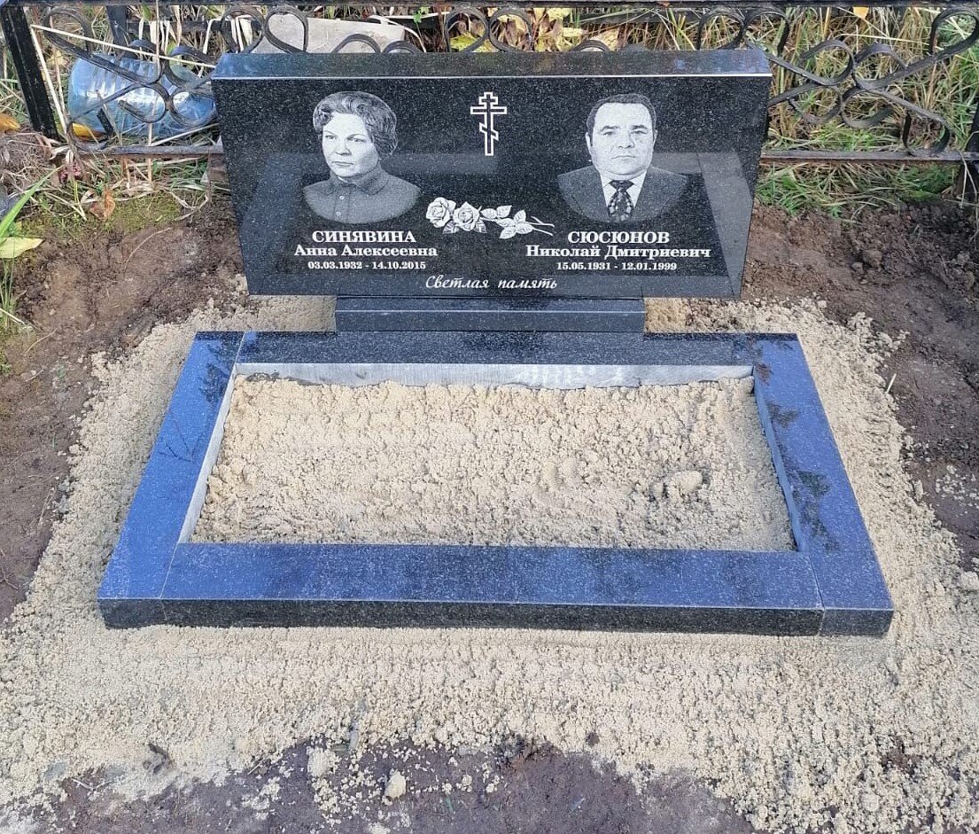 Недавно наша компания изготовила и установила памятник на могилу на одном из кладбищ Московской области. Композиция состоит из горизонтальной стелы классической формы с оформлением лазерной гравировкой (портреты усопших, другие изображения, ФИО, даты рождения и смерти, эпитафия), простой прямоугольной тумбы и открытого цветника. Вся конструкция выполнена из чёрного карельского гранита, Габбро-диабаза. Гранитная мастерская "Память М" - изготовление памятников на могилу. Каталог моделей представлен на нашем сайте, выбирайте размер, материал и варианты оформления в удобном калькуляторе.