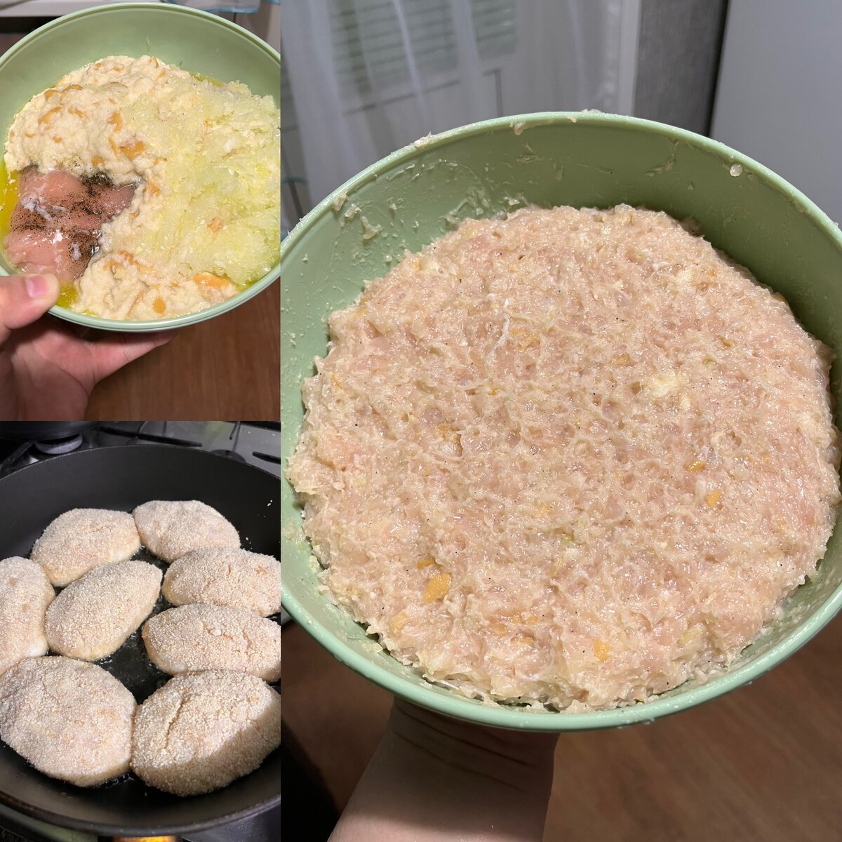 Сочные и очень вкусные куриные котлеты! Понадобится: Приготовление: Филе пропустить через мясорубку, туда же пропускаем лук, размягченный хлеб в воде, растапливаем масло в микроволновке(остудите), вливаем его в фарш, соль, перец. Всё перемешиваем очень хорошо, долго, до однородной массы. И оставляем в холодильнике на час. Далее лепим котлеты в произвольной форме, обваливаем в сухарях и жарим. Остальное замораживаем. P.S: из данного кол-ва фарша у меня получилось 23 котлеты. Соответственно, если не нужно такое большое кол-во, уменьшите просто все ингредиенты в 2 раза.