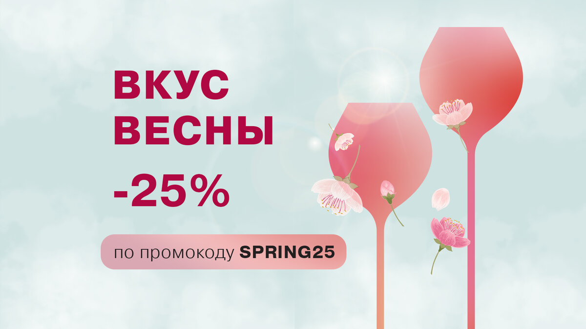 В период с 3 по 30 апреля в уютной винотеке Виником (Москва, Малая Дмитровка, 31) и на сайте по промокоду SPRING25 вас ждет скидка 25% на классные вина.