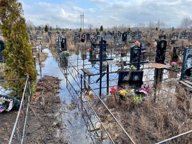 Жители Новомосковска жалуются на затопленные могилы на местном кладбище. На снимках, выложенных в сети, видно, что некоторые могилы полностью находятся в воде. Фото опубликованы в паблике «Новомосковск 24». Также у горожан есть вопросы к качеству дорог на погосте. Ранее новомосковцы активно жаловались на качество дорог и подтопления в самом городе. Жители даже писали петицию за отставку главы администрации города Алексея Бирюлина. Позже новомосковцы начали распространять в сети мемы с участием чиновника. Сам Бирюлин оценил работу автора и призвал отозваться, чтобы забрать приготовленный подарок.
