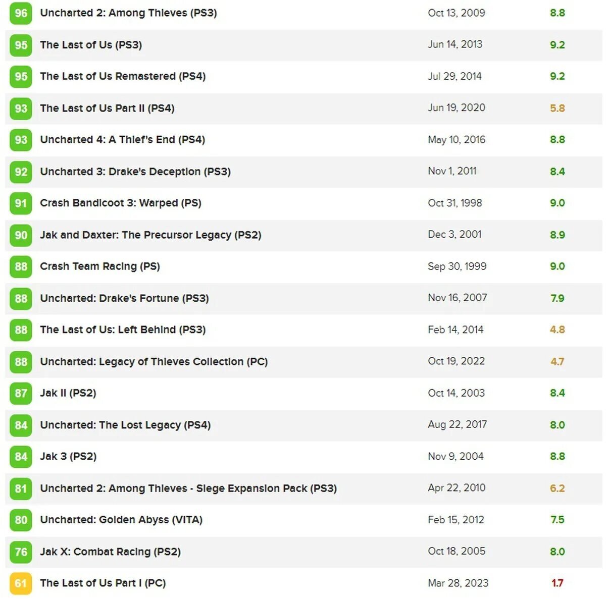 Вышедшая 28 марта ПК-версия The Last of Us стала самым низко оцененным проектом студии Naughty Dog. Рейтинг игры на Metacritic по рецензиям журналистов составляет 61 балл из 100, тогда как игроки поставили ей всего 1,7 баллов из 10. The Last of Us уже появилась на торрентах В основном пользователи жалуются на плачевное техническое состояние игры, которое выражается ужасной оптимизацией и огромным количеством багов. The Last of Us Part I (ПК) получила рекордно низкие оценки от игроков Naughty Dog активно работает над исправлением проблем с ПК-версией. По заявлению разработчиков, в начале апреля для игры планируется выпустить два патча. Заглавное фото: Wallpaper Abyss