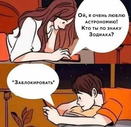 Сразу скажу, осознав весь ужас мировоззрения девушки потом, я был несказанно рад, что всё закончилось, не успев начаться. Познакомились мы с девушкой на сайте знакомств, немного пообщались, и она мне поведала, что я ей очень нравлюсь, что я - её тип по внешности) Ну что же, я был очень рад, потому что девушка мне тоже понравилась. Через какое-то время она просит сказать ей мой ник в инстаграме. Я как-то не придал этому значения, а было нужно! Её заинтересовал всего один вопрос - почему на фотках так мало моих фоток, а только какие-то дома (увлекаюсь архитектурой). Ну я ей сказал, что нравится фоткать дома) ну ок, разобрались. И тут я заметил где-то в сети, что у нас с ней дни рождения в один день. И сказал ей об этом. Ну думаю, круто ведь - одновременно днюху отмечать! Но на неё это произвело совсем другой эффект: - Ты тоже Дева? - Да. - Тогда у нас ничего не получится. Типа у дев дурной характер. Эээ, блин, ну и ладно! Она очень быстро свернула все общение, а я сначала расстроился, а