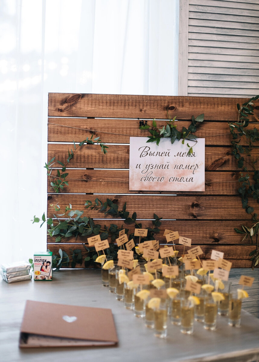 Схемы рассадки и карточки с именами на столах — стали уже привычным атрибутом как пышной, так и скромной бюджетной свадьбы. Эту деталь можно тоже разнообразить. Подготовьте фото каждого гостя и разместите на плакате с указанием места за столом. Вашим близким будет приятнее увидеть свои настоящие лица, а не скучные надписи.