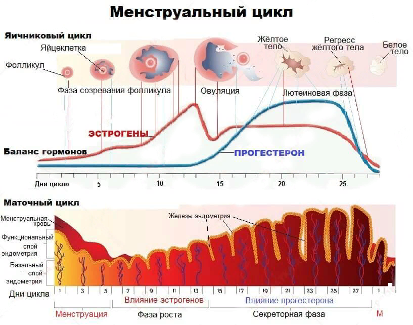 Ритмически повторяющиеся, гормонально-обусловленные процессы в женском организме, сопровождающиеся через определенные временные интервалы менструальным кровотечением, называются менструальным циклом. В каком возрасте у девочек начинаются месячные, зависит и от их проживания. Чем южнее живет подросток, тем раньше происходит менархе. Менархе, то есть первые месячные, у девочек наступают в период от 12 до 14 лет. В возрасте от 45 до 55 лет менструальный период завершается. Этот период принято называть пременопаузальным. В период месячных происходит отторжение функционального слоя слизистой оболочки матки как следствие уменьшения продукции прогестерона в организме. Месячный цикл женщины подразделяется на три фазы. 1 фаза, фолликулярная, характеризуется выработкой эстрогенов, под воздействием которых созревают фолликулы. Из всех фолликулов впоследствии выделяется доминантный фолликул, из которого позже выходит созревшая яйцеклетка. 2 фаза менструационного цикла – это наиболее короткая фаза,