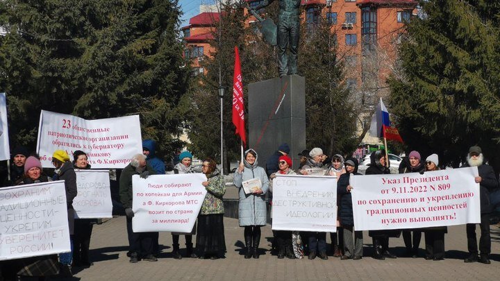 В понедельник, 3 апреля, около театра "Глобус" в Новосибирске состоялся пикет в поддержку нравственности и традиционных ценностей, а также против концерта Филиппа Киркорова. Выступление известного певца запланировано на 5 апреля в "Локомотив-Арене". Православные активисты (и не только) требуют отменить мероприятие, утверждая, что его новая программа является ни чем иным, как пропагандой содомии, сатанизма и вообще безнравственным действом.