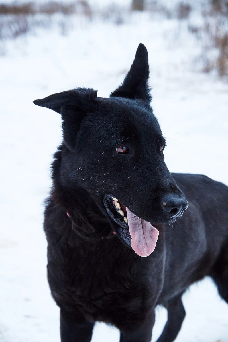 Родилась и жила девочка у своего заводчика в питомнике немецких овчарок (да-да, эта черная красотка - чистокровная немецкая овчарка!) К сожалению, из-за небольшой особенности здоровья, не влияющей на качество жизни, Вьюга не могла рожать щенков(на данный момент она стерилизована). «Зачем в питомнике собака, которая не приносит доход, а тратиться на ее содержание нужно?» - подумал заводчик. Да и после укуса за правое ухо оно перестало стоять. Не очень породный вид получается. Думал-думал этот человек, и решил вывезти Вьюгу в лес, чтобы избавиться от бесполезной для него ноши… к счастью, Вьюгу нашли добрые люди, и по стечению обстоятельств она попала к нам.