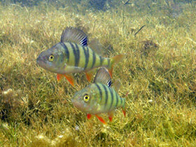 Окунь — русское слово, основой которого является «око», то есть — глаз. По своей форме эта рыба и действительно его напоминает. Иначе его в народе называли матросиком или полосатиком, иногда — горбачом. Впрочем, последнее — это, скорее, ликующий крик рыбака: - «Горбача поймал!», что означает одно: окунь взрослый и крупный, у окуневой недоросли горба ещё не бывает. Семейство окуневых весьма распространено не только в пресных, но и в слабосолёных водоёмах. Насчитывается более двухсот видов представителей этого семейства в озёрах, реках и прудах всего мира. Однако доминирует среди этого разнообразия именно окунь речной, тот самый, которому так радуются рыбаки в России. У него тоже есть некоторое количество отличающихся друг от друга форм.