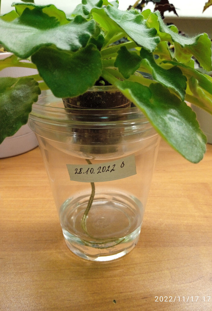 Привет! Сегодня вышла из отпуска, а на работе - растительные сюрпризы. Оставляла девочкам-коллегам свои растишки, не хотелось самой ездить и поливать. Я, конечно, очень люблю свою работу, но в отпуск ездить туда - перебор, тем более за 2022 год остался ещё 21 день, и смогу ли я ими воспользоваться - большой вопрос... Уже смирилась, что "сгорят"... Фиалки, правда, у меня на фитиле, могут и 2-3 недели без людей обходиться, ставила эксперимент. Для фитильного полива я взяла 300-мл стаканы, перевернула купольную крышку с отверстием - получилась такая конструкция: За 3 недели даже осталось немного воды (не доливала). Это я готовилась к новогодним каникулам - в результате ни одна фиалка не пострадала. Сейчас я многие мини-фиалки переставила в 200-мл стаканчики с широким дном: Они ещё и серого цвета - посмотрю, будет ли вода меньше "цвести". Вообще я уже придумала покрасить стаканы в белый цвет, но оставить небольшую прозрачную полоску для отслеживания уровня воды. Просто наклею полоску