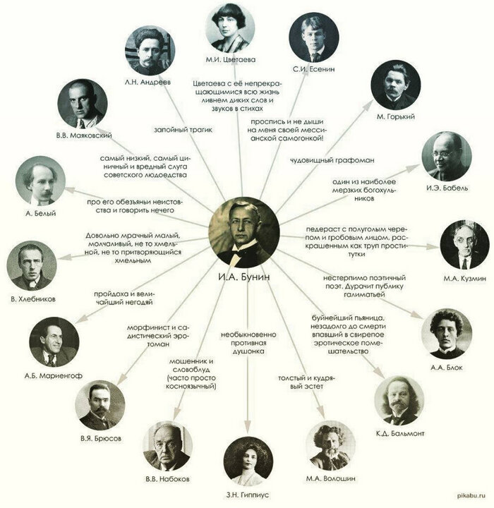 Иван Бунин писал, что не принадлежит ни к одной литературной школе. Он не считал себя «ни декадентом, ни символистом, ни романтиком, ни реалистом» — его творчество действительно оказалось за пределами Серебряного века. Несмотря на это, произведения Бунина получили всемирное признание и стали классикой. «За строгий артистический талант, с которым он воссоздал в литературной прозе типичный русский характер» Бунин — первым из русских литераторов — получил Нобелевскую премию.