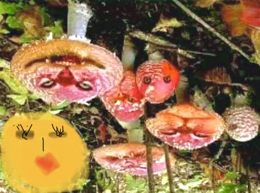 Баба стояла над телом, вытирая платком нож, вглядываясь:«Ну вот, такой ты мне нравишься больше, а из рук, ног и туловища лапшу сделаю.» Остывая на окошке, Колобок задремал и свалился в яму, вырытую зайцем. Он летел и думал:«Какая, однако, глубина.» Вдруг мягко приземлился и узрел впереди тропинку, ведущую в странный подземный лес. Деревья, кусты и вообще всё вокруг росло корнями вверх, а грибы походили на кораблики с мачтами. На одном просматривалась надпись:«Съешь меня и споёшь.» Колобок застыл в недоумении: — Так не честно, это я должен сказать. Это звучит совсем не так, как надо. Из-под гриба вылезла синяя в жёлтую крапинку гусеница и улыбнулась: — Знаешь у нас тут всё вверх ногами, привыкай. Или отвыкай, или запоминай, или забывай. Так бормоча, она медленно поползла задом наперёд, и исчезла возле кучки разноцветных лепестков Цветика-семицветика. Прибывая в небольшом шоке, Колобок покатился дальше, размышляя: — Лес чужой и живут тут Чужие, ни волка, ни медведя, ни даже лисы. Вблиз