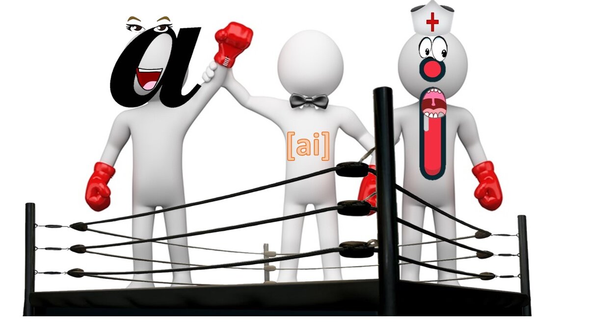 Конкуренция гласных «девочек» за право читаться в словах – это особая многокуплетная песня, с массой вариаций и несостыковок. Попробуем во всем разобраться с учетом знакомства с характерами наших «подружек». Сегодня на повестке дня три комбинации с нашими героинями: «А» – «Наглость и напор», «I\Y» – «Боль от укола иголочки» и «О» – «Красота и гламур». Раунд первый: «Наглость» vs «Боль». В буквосочетании ai\ay под ударением побеждает буква «А», задавив даже бывалую «медсестру» «I», не говоря уже про её скромную сестренку «Y», своей жизнерадостностью и напором. Именно поэтому в таких словах, как: rain [rein]* - дождь, aim [eim]* — цель, say [sei]* - сказать, play [plei]* – играть, мы слышим звонкий окрик - Эй!!! Хотя, куда же без исключений – в слове said [sed]* «А» что-то взгрустнулось, наверное, вспомнила, как кто-то что-то ей сказал! Ну, и «нытика» нашего со счетов нельзя скидывать – с ним в компании все грустят - ai+r - [eə]*: air [eə]*— воздух, hair [heə]*— волосы. А вот в безу