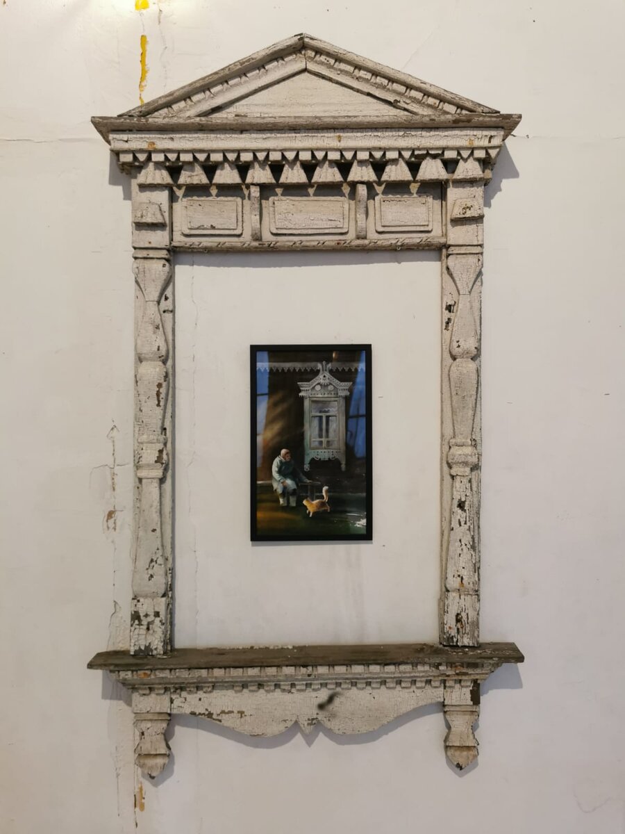 Оформление выставки вышло очень необычным - картины расположили внутри старинных наличников, каждый из которых имеет свою уникальную историю! Мне, как художнику, невероятно интересно было увидеть свои работы в таком уникальном и самобытном оформлении!