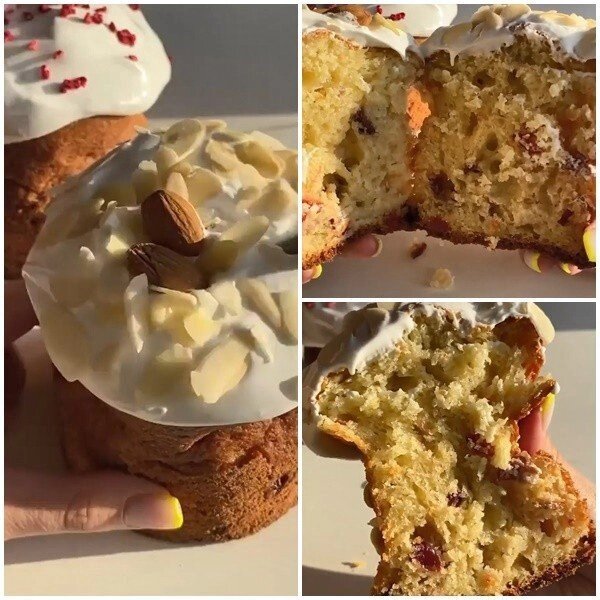 Творожный кулич Он такой воздушный, что не оторваться просто 🤤 На 2 кулича формы 9*9: Сливочное масло 90 г Сахар 90 г Яйцо 2 шт (С1) Творог 180 г Мука 130 г Разрыхлитель 1/2 ч л Сушеная клюква 40 г Для глазури Белок 1 яйца (С1) Сахарная пудра 70-80 г (я делала погуще) Лимонная кислота маленькая щепотка 1. Масло комнатной температуры взбиваем с сахаром. 2. Добавляем яйца и перемешиваем. 3. Творог перетираем через сито или измельчаем с помощью погружного блендера. Добавляем к яичной массе. 4. Муку с разрыхлителем просеиваем и перемешиваем. 5. Добавляем к тесту клюкву. Если ягоды крупные, то можно её поделить на 2-3 части. Также можно использовать цукаты и сухофрукты. 6. Выкладываем тесто по формам, чтобы было чуть больше половины, тесто хорошо поднимется. 7. Выпекать в разогретой духовке до 180 гр 40 мин. Для глазури смешиваем белок, сахарную пудру и лимонную кислоту. Взбиваем до получения белой, густой и глянцевой массы. 8. Куличи смазываем глазурью и украшаем. Я украсила субли