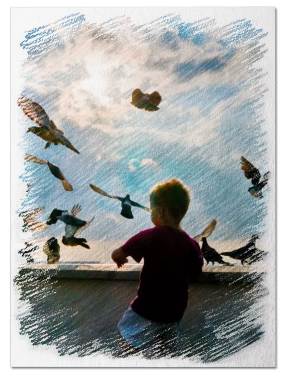 Ванечка сидел рядом со мной и аппетитно жевал яблоко, что я ему дала. Это был худенький мальчик семи лет, с абсолютно белой кожей и такой же белоснежной головой. Он качал своими худыми ножками и вел со мной важную для меня беседу.