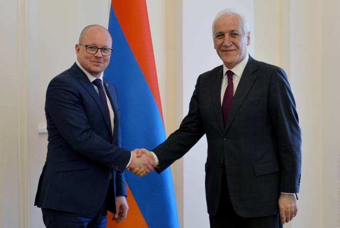 Президент Армении Ваагн Хачатурян принял делегацию во главе с руководителем группы дружбы Швеция-Армения Риксдага Швеции Бьорном Сёдером. Во встрече приняли участие Чрезвычайный и Полномочный посол РА в Швеции Александр Арзуманян, заместитель министра иностранных дел Паруйр Ованнисян и депутат Рипсиме Григорян. «Арменпресс» об этом сообщили в Департаменте по связям с общественностью Аппарата президента. Приветствуя гостей, президент республики отметил динамичное развитие армяно-шведских межпарламентских отношений. «Приветствую Вас в Республике Армения и, конечно же, в резиденции президента. Пользуясь случаем, хочу поблагодарить Вас за активное сотрудничество и содействие. За тридцать лет армяно-шведские отношения пережили развитие, в основе которого были четкие принципы и ценности, это демократические институты, права человека и, конечно же, сохранение свобод. Уверен, что Ваш сегодняшний визит будет способствовать развитию отношений между нашими странами, и, конечно же, у Вас еще раз б