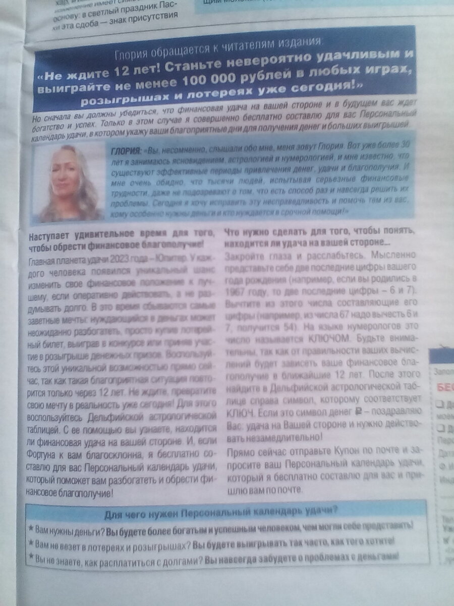 Приветствую вас, уважаемые читатели! Нынче тема моих публикаций будет посвящена разбору обещанного богатства, ясновидящими и предсказателями, путём различных вычислений. Ожидается несколько статей, поэтому советую подписаться всем, ещё не подписавшимся на мой канал, дабы не пропустить выход очередной статьи. ДЕЛЬФИЙСКАЯ АСТРОЛОГИЧЕСКАЯ ТАБЛИЦА. Как утверждает знаменитая ясновидящая и предсказательница Глория, этот год даёт уникальный шанс изменить своё финансовое положение к лучшему. К тому же такая благоприятная ситуация повторится только через 12 лет. Надо успеть поймать удачу за хвост, но для этого следует узнать, находится ли финансовая удача именно на вашей стороне. Для этого требуется произвести небольшие математические расчёты и свериться с таблицей. А нет... ещё надо обязательно закрыть глаза и расслабиться. Мысленно представить две последние цифры вашего года рождения. Затем вычесть из этого числа составляющие его цифры (например, 93-9-3= 81). Всё, ключ к богатству найден! Св