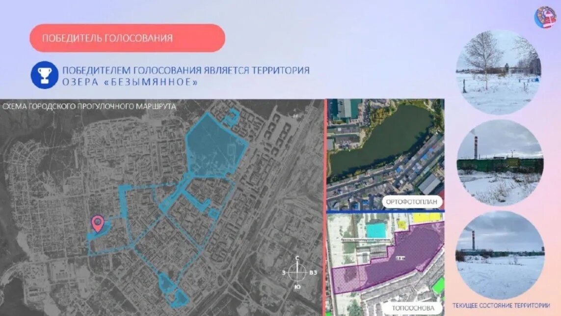 В Ноябрьске общенародным голосованием выбрали территорию, проект благоустройства которой, в случае победы на федеральном конкурсе, осуществят за счет государства. Проект благоустройства берега Безымянного озера направят на Всероссийский конкурс лучших проектов создания комфортной городской среды. Если он победит, территорию преобразят в 2024-2025 годах, сообщили в городской администрации. За реконструкцию береговой территории проголосовало свыше 1700 ноябрян. Горожане выбирали из семи проектов благоустройства, таких как сквер на улице Дружбы, парк «Буровичок», авторынок, кванториум. Северяне еще могут внести дополнения к проекту рекреации озерной береговой линии. С 7 по 17 апреля их примут в архитектурном управлении.