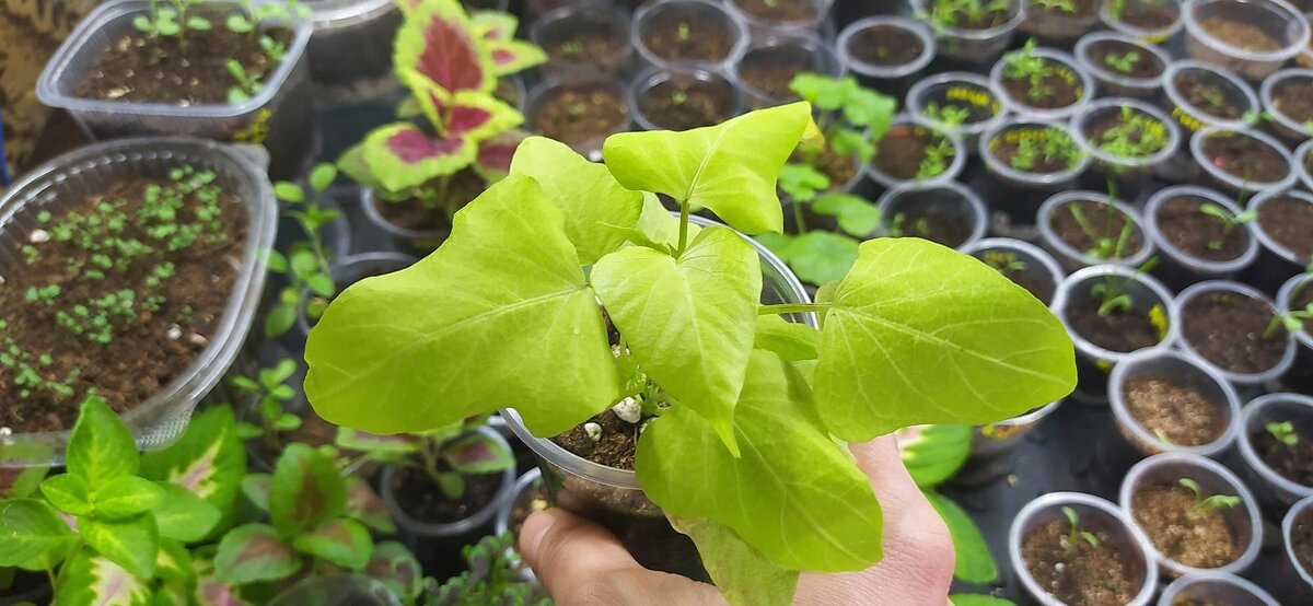 Всем добрый день! Спешу поделиться радостью и новостью. Совсем недавно я была в областном центре и соответственно не приехала оттуда с пустыми руками. Мои приобретения. Так сказать, рубрика похвастушки. Прибрала я не так уж много, как хотелось бы, но очень давно хотела ипомею батат. Давно присмотрела, ещё зимой её. И наконец-таки приобрела всего ничего. Правда два из них безымянные, но это не проблема. Ещё один хочу тёмный, но лист как у клена рассечённый. И счастью не будет предела. Ещё в прошлый раз я присмотрелась к пеларгониям, но честно сказать пожалела денег. Бывает такое. Поехала именно за ней. Точно такого не было. Крайне мере как я её запомнил. Была вот эта красотка. Из разряда не просто карликовых, а миниатюрных. В общем смотрю на неё и дышать боюсь. Имя её Excalibur или МЕЧ КОРОЛЯ АРТУРА. И обычную купила можно сказать без изысков. сорт Ванкувер. Без лапочки колеуса я не уехало приобрела вот такую красотку. Звать его INKE FINGTRS. Итак, между прочим посадила я ещё на расс
