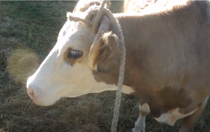 До этого мы уже проходили небольшие мостики, корова упиралась, но не сильно. А тут она просто вросла в землю копытами, мы втроем - один за веревку, а двое сзади, кое как ее загнали на этот мост. Минут десять продолжалась борьба, но победил коллектив.