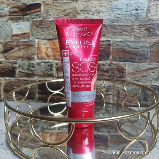 Доброго времени суток! Мне кажется, крем для рук есть у всех, даже у тех, кто говорит, что совсем не пользуется косметикой. Живя в России, с её суровым климатом, крем для рук — практически необходимость. К тому же у меня работа связана с постоянным мытьём рук с мылом, обработкой рук антисептиком и ношением латексных перчаток (слава богу, перчатки с тальком в прошлом). Как и у многих других, у меня полно кремов для рук, которые расфасованы по всем ящикам, сумкам и даже карманам. У меня нет особой привязанности к определённой марке, поэтому я беру что под руку попадается, правда, есть несколько довольно известных марок, которые обхожу стороной. Не так давно я допользовала крем для рук от Eveline из серии с облепихой, мне он очень понравился, хотела купить такой же, но не нашла в оффлайн магазинах, зато купила другой, тоже от этого польского бренда. И это Крем для рук Eveline EXTRA SOFT SOS Интенсивно питательный для очень сухой кожи Бренд Eveline cosmetics. Произведено в Польше. Цена 270