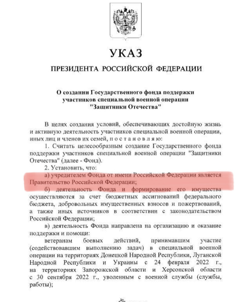 Президент Российской Федерации подписал Указ о создании фонда «Защитники Отечества». Приветствуем всех читателей канала Ветеран Боевых Действий, рассмотрим сегодня новый документ. Данный фонд, который получил название «Защитники Отечества», создан для поддержки участников СВО и членов их семей. Также вышеуказанная организация будет оказывать поддержку и ветеранам, добровольцам, участвовавшим в освободительных боях на территории ЛДНР начиная с 2014 года. Учредителем фонда будет Правительство РФ. Деятельность «Защитников Отечества» будет финансироваться из федерального бюджета и благотворительных средств. Председателем наблюдательного совета госфонда поддержки участников СВО «Защитники Отечества» стал первый заместитель главы администрации президента Сергей Кириенко. Председателем фонда назначили тем же указом Анну Цивилеву. Небольшая информация о ней: Анна Цивилева также является членом совета Евразийского женского форума при Совете Федерации РФ. Из личной жизни: замужем за Сергеем Ц