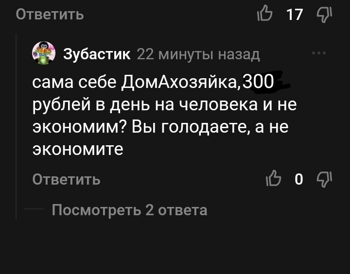 Что-то меня очень сильно зацепила статья про питание и ответные комментарии на мои вопросы. Да так, что я твердо решила посчитать на какую же сумму мы съедаем в день. А может и правда питаемся, как бомжи и голодаем, просто не всегда о себе думаешь, как оно на самом деле есть Вчера все подсчитала и получилось на двоих 652 рубля, на одного если делить на пополам, то 326 рублей. Немного о нашем рационе: Работаем по пятидневке. Муж не завтракает, завтракаю только я. Еду на работу берём так же с собой. В любой суп у нас максимум идёт 300гр мяса на 2л кастрюлю, режу его мелкими кусочками иначе все остается и не сьедается. Готовлю основные блюда два раза в неделю, это воскресенье и среда. На неделе дополнительно могу сделать салатик,бутерброды, все что делается быстро. Стараемся делать все по максимуму, не люблю когда продукты выбрасываются. Закупку продуктов стараюсь делать в суббот, на неделе в магазин ходим очень редко,один или два раза и то покупаем по мелочи. Люблю что бы на столе был