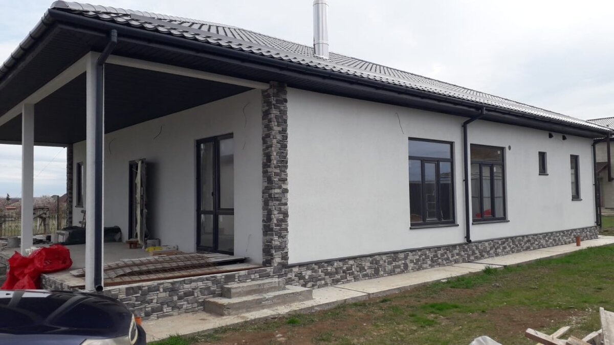 В прошлом году мы построили большой просторный одноэтажный дом в Керченской районе полуострова. Хозяева никуда не торопились и все работы проводили обдуманно, чётко и слаженно. И вот результат! Красота-красотища. Причём, все работы выполнены нашим персоналом из Краснодара. Заказчики не стали заморачиваться и искать кого-то по месту, тем более, что ценник у местных достаточно высокий. И наружную и внутренние отделки, и прокладку коммуникаций — всё сделали мы! По внешней отделке — это штукатурка с применением искусственного камня в качестве окантовки… Так что если у вас есть желание и возможности построить что-то подобное — звоните, не стесняйтесь. Мы и планировки обсудим и сделаем расчёт! 89384607686