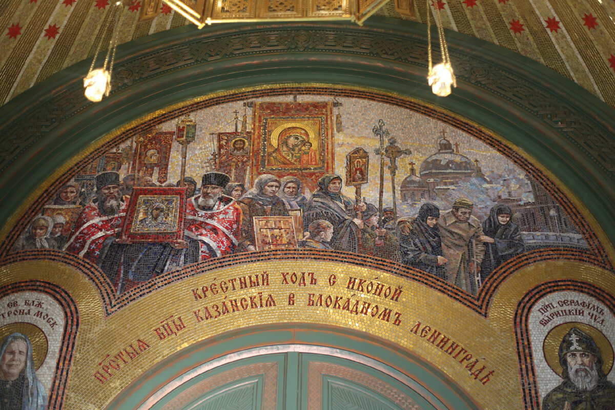 При входе в Главный храм Вооруженных Сил России в центральном тимпане притвора расположено мозаичное панно, повествующее о событиях 1942 года.