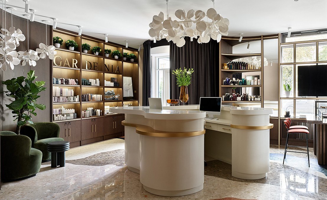 Архитектор Ариана Ахмад оформила салон красоты Gardenia: она продумала не только интерьер, но и то, какие снимки для соцсетей тут будут получаться.⠀ В этом московском салоне – абсолютно домашняя атмосфера: здесь есть искусство и авторские предметы интерьера, что редкость для общественных пространств. Стены отделаны деревянными шпонированными панелями шоколадного оттенка. ⠀ «Мы тщательно продумывали всё до мельчайших деталей: подносы, подставки для стаканов, фарфоровую посуду. Нам хотелось, чтобы у посетителей было ощущение, что они пришли не в салон красоты, а к кому-то в гости», – рассказывает Ариана Ахмад. ⠀ ⠀ Именно поэтому в зоне ресепшн их встречают фарфоровые подвесные светильники, сделанные на заказ, и они стали частью отличной фотозоны.⠀ Подробнее об изысканном и функциональном дизайне пространства читайте на нашем сайте.