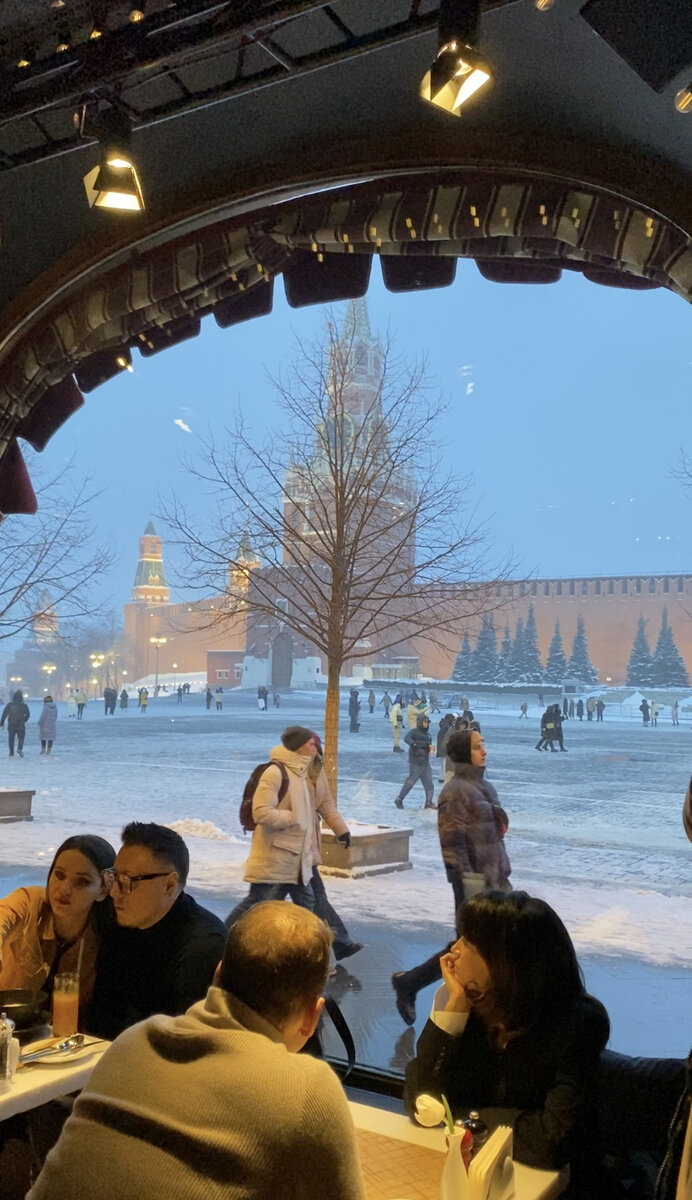 Интерьер: вообще очень простенький, но возможно была такая концепция, чтобы не отвлекать от главной фишки, а именно - вид на красную площадь (он шикарен). Я планирую сюда сходить теплой весной/летом, когда будет открыта летняя веранда (она максимально цветочная)