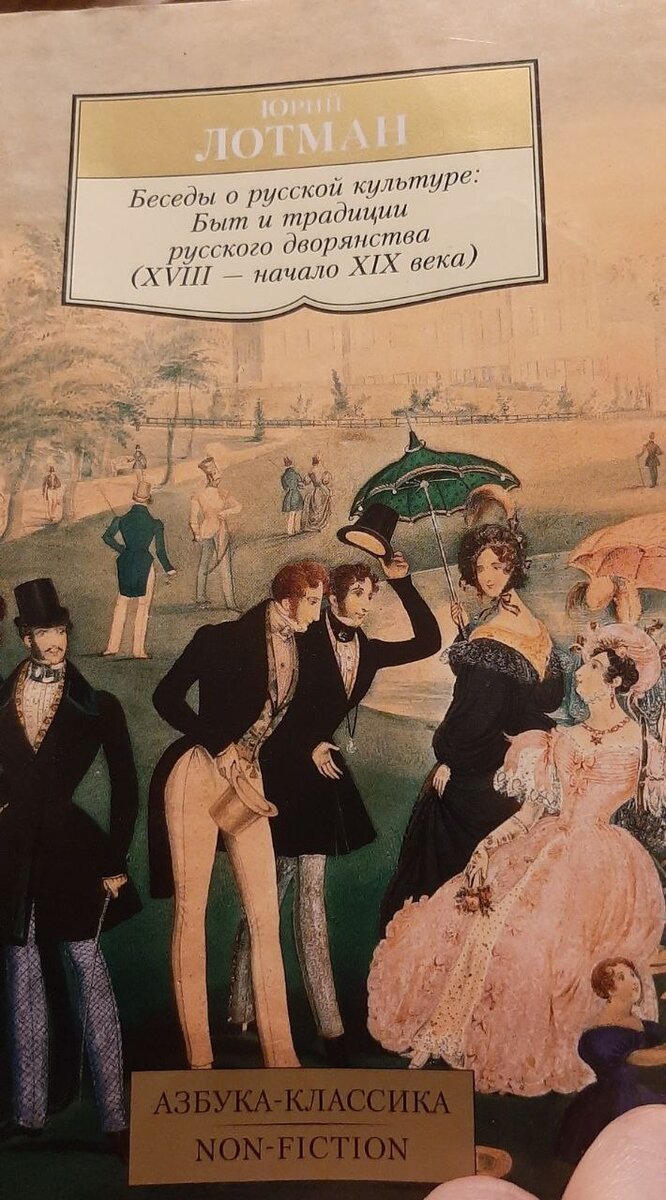 Это книга с которой началось моё недавнее "настоящее возвращение" к литературе. К Лотману я пришла после того, как несколько людей, включая замечательного Евгения Жаринова, которых я слушаю и читаю, делали ссылки на него. Написано очень увлекательно, книга, буквально втянула меня и не даёт оторваться. Большое количество информации для понимания культурной среды в которой рождались и творили великие классики 19 века. Очень интересно, как автор отмечает контрасты и противоречия в воспитании, быту, например массовое воспитание французскими гувернантами (бежавшими в Россию после французской революции) повлияло на развитие декабристского движения; мода на самоубийства как декларация свободы воли; бретерство как способ самоутверждения в обществе; привычка носить "маски" среди дворян, и многое многое другое. Написано очень увлекательно, книга, буквально втянула меня и не даёт оторваться. Большое количество информации для понимания культурной среды в которой рождались и творили великие классик