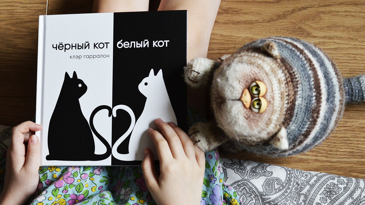 Встречали людей у которых всегда «все плохо»? Погода плохая, кофе не вкусный, все вокруг мешают, везде очереди, дорого, плохо и долго. Жизнь у таких людей всегда в черном цвете. Бывают еще крайне категоричные персоны: либо все хорошо, либо все плохо. Либо прав, либо однозначно нет, либо все идеально, либо ужасно, умный-дурак, все или ничего. Про таких говорят — черно-белое мышление, без вариантов, без оттенков. Оба случая — крайние и сильно усложняют жизнь. Сами же люди могут этого не замечать. Долгое вступление получилось у меня к небольшой детской книге, вышедшей в издательстве «Поляндрия» — «Черный кот, белый кот» французской писательницы и иллюстратора Клэр Гарралон. Очень простая история: живет черный кот в белом доме, а белый кот в черном доме. Решили они встретиться и поиграть. Только вот проблема: в доме белого кота – черном, не видно черного кота, а в белом доме черного – не видно белого. Запутались? А котики не могут играть. Что делать? Ответ прост: найти место ни черное, ни