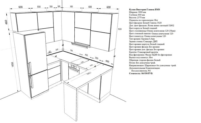 Решился поискать кухни в интернете, но модульные не подходили по размерам т.к. типовые размеры 40, 60см. А угловых шкафчиков так вообще единицы делают. Но тут вылезла реклама одного магазина, где мне по электронной почте по моим размерам накидают кухню, да и вообще за дешман. Рискнул и отправил свои размеры. Вот пришел ответ: