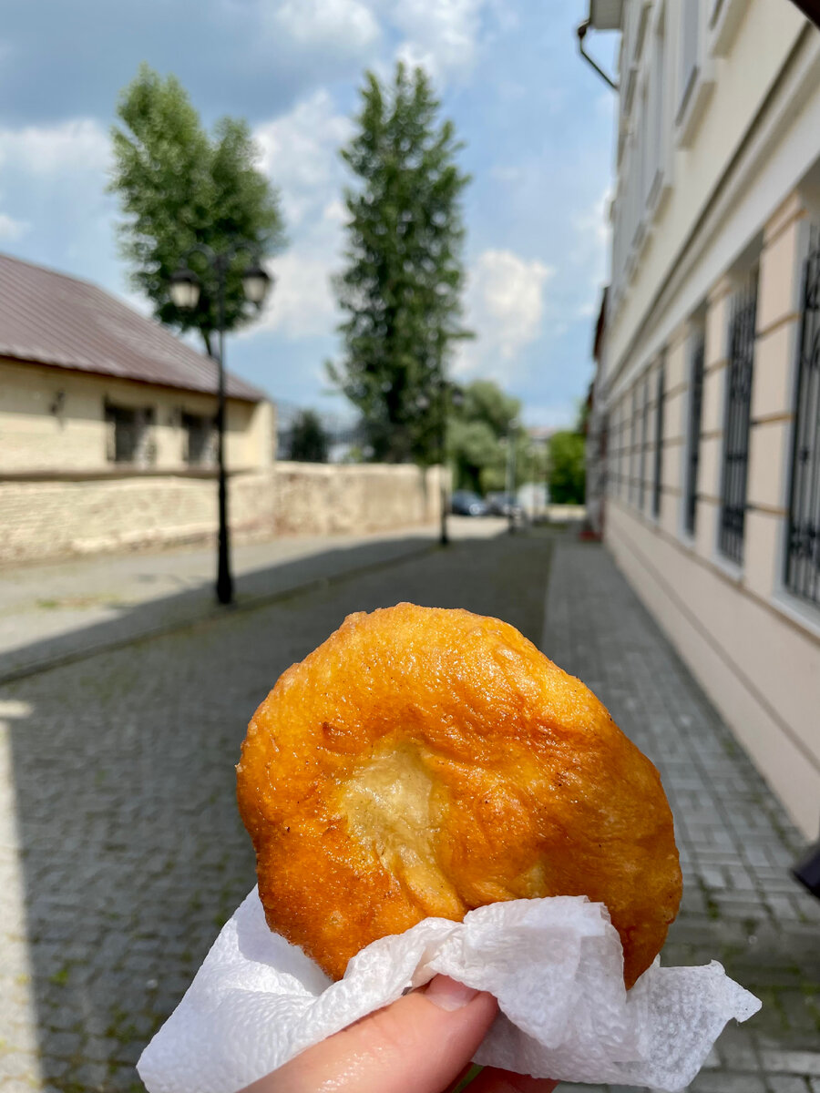Сегодня хочу вам рассказать о самой популярной перемячной в центре Казани, о котором знают даже не все местные. В любое время здесь многолюдно, частенько собирается очередь аж с улицы. Ну и соответственно, высокий рейтинг и хорошие отзывы в Яндекс.Карты. Обязательно посетите это заведение если окажетесь в Казани, обязательно попробуйте эти перемячи. Перемяч - национальное татарское блюдо, это выпечка из теста и мяса, что-то типа пирожков, но на татарский лад. Они жирные, они ни разу не пп, но они сытные и доступные по цене. Есть одно заведение в центре Казани, в котором продают перемячи с пылу с жару – они всегда свежие, их готовят на месте, если заглянете через прилавок - то увидите, как они готовятся. Пекарня работает с семи утра до восьми вечера (в выходные до 19). В меню всего два вида выпечки – перемяч с мясом и треугольник (эчпочмак). Также в продаже есть напитки, например, домашний компот из сухофруктов за 40 рублей (0.5 л). Рекомендую обязательно посетить кафе “Перемяч” на ул