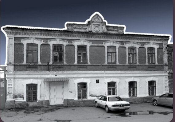 Первый из них, это особняк с флюгером, который купил Георгий у купца Аксенова в 1916-м году, второе здание сейчас – это одно из подразделений детской школы искусств № 1 в Старом городе, находящееся по ул. Пионерской, 14/ул. Шевченко, 34. Александр.