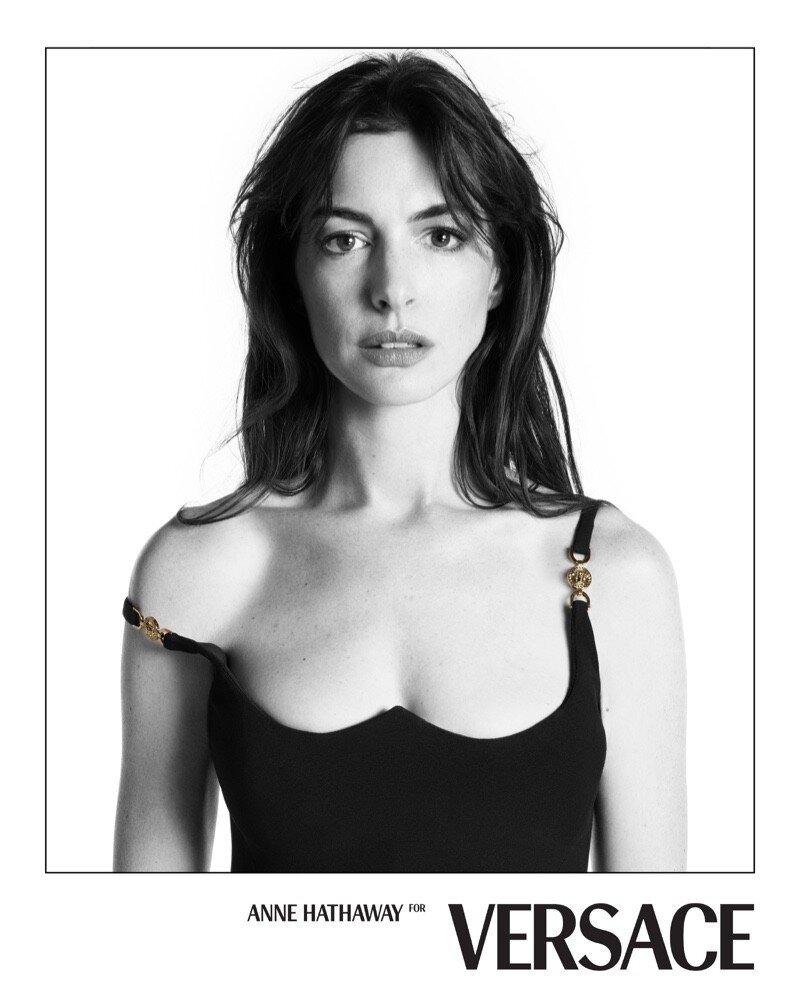 Образы на все времена. Фото: Versace Versace показал новую рекламную кампанию коллекции Icons. Ее героиней стала актриса Энн Хэтэуэй. Донателла Версаче отзывается об Энн с восторгом и считает ее настоящей музой. «Я люблю ее как актрису, но еще сильнее восхищаюсь ей как женщиной, – признается дизайнер, – Она большая звезда и бизнесвумен, а кроме того, она творческая и невероятно добрая. Все это делает ее настоящей иконой Versace!» Коллекция Icons задумывалась так, чтобы изделия в ней были вне времени и вне капризов моды. Донателла стремилась разработать наряды, которые станут чьими-то любимыми вещами надолго и будут актуальны как в настоящем, так и в будущем. Фото: Versace Хэтэуэй наглядно продемонстрировала, какова вневременная элегантность в стиле Versace Icons. Актриса примерила ряд образов, в которых минимализм сочетается с шиком и эффектными деталями. На одном из снимков она позирует в черном корсетном топе с декоративными элементами золотого оттенка, черной кожаной куртке и синих