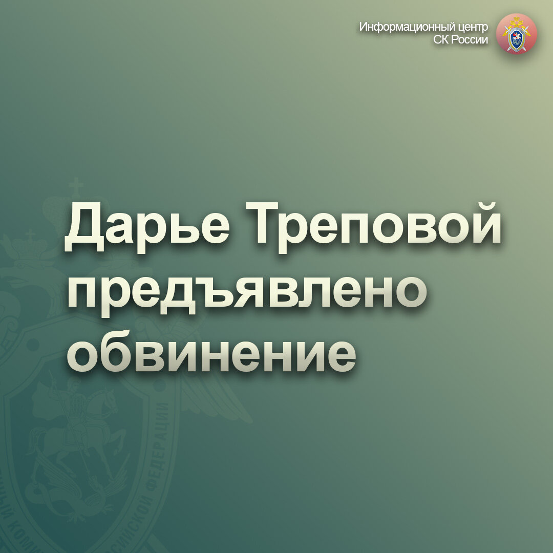 Главным следственным управлением СК России предъявлено обвинение Дарье Треповой. Ей инкриминируется совершение преступлений, предусмотренных п. «б» ч.3 ст.205, ч.4 ст.222.1 УК РФ (террористический акт, совершенный организованной группой, повлекший умышленное причинение смерти человеку; незаконное ношение взрывчатых устройств, совершенное организованной группой).