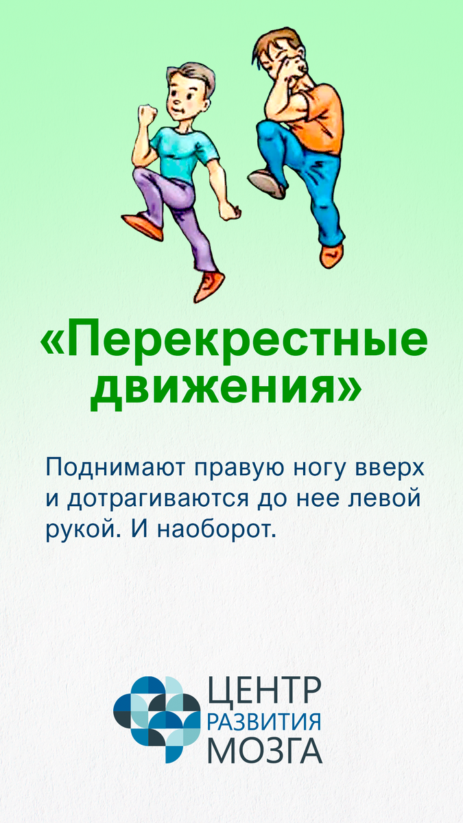 Межполушарное взаимодействие – это единая система, в которой работают оба полушария. При этом каждое из них выполняет свои собственные функции, и для нормальной работы мозга необходимо связанное взаимодействие полушарий. Давайте выучим, и доведем до автоматизма первые 3 упражнения для нормализации и укрепления связей между полушариями мозга. Сохраняйте карточки. «Мозговую гимнастику» необходимо выполнять несколько раз в день по несколько минут. Она будет полезна как детям, так и взрослым. Больше публикаций у нас в телеграм