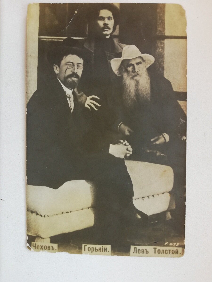 На этом фото засняты три величайших русских писателя: Лев Николаевич Толстой, Максим Горький и мой любимый Антоша Чехонте. Казалось бы, ну что необычного может быть в снимке 1901 года? Ну да, писатели, приехали в гости в Ясную Поляну и решили увековечить эту встречу для потомков. Но тут не всё так гладко. Некоторые моменты Стоит начать с того, что Лев Николаевич ненавидел фотографироваться. Он частенько поговаривал, что фотоаппарат крадёт частичку души, что это изобретение "самого дьявола". Шутил, конечно, но правда в том, что уговорить его сфотографироваться было ну очень непросто. Во-вторых, он не особенно жаловал молодых литераторов и крайне редко с ними общался. Исключение он делал для Антоши Чехонте, которого любил всем сердцем и считал кем-то вроде приёмного сына. Дружили они очень, часто навещали друг друга. Был даже случай, когда у Антоши пошла кровь горлом, то Толстой был первым, кто навестил его в больнице. Пойдя на поправку, Чехов приехал в Ялту. Нежась под тёплым крымским