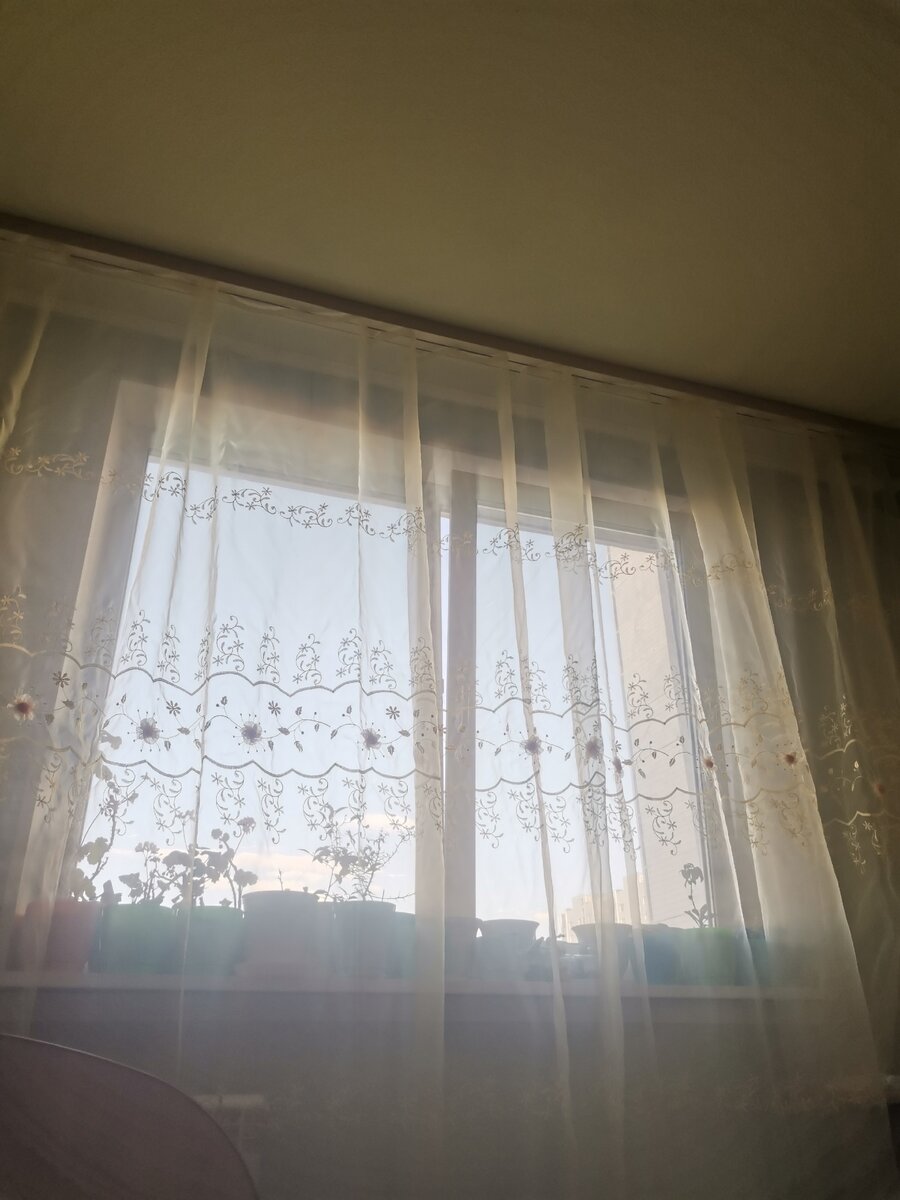 Вернуть в магазин не получилось бы, посему и отдали на "Авито" в два раза дороже, чем покупали. Причем желающие нашлись сразу, в первый же день, так что в совокупности "вернула" тысячу рублей. И одна из нелепых историй была как раз про тюль: сначала девушка просила записать ей видео комнаты, чтобы она понимала как смотрится ткань с нашими оттенками в квартире, потом просила привезти ей и подождать пока она все развесит и посмотрит как будет смотреться у нее, а еще почему-то упорно советовалась со мной по поводу штор, которые в теории можно было бы купить к такой тюли (просто отправляла разные фотографии с разных магазинов с вопросом "такие подойдут?").
