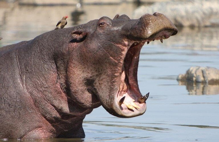 “У бегемотов жутко зловонное дыхание, и рот они открывают не позевать, а отпугнуть врагов”.