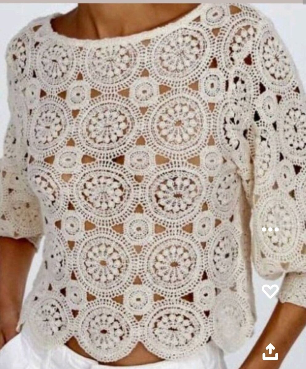 Добрый вечер дорогие, рукоделочки.На дворе весна,солнышко светит ,а это значит что скоро наступит прекрасная пора лето.И самое время творить и создавать нашими ручками шедевры.Меня все ещё не отпускают модели связанные крючком. Много идей в интернете,но я здесь выставляю модели те что мне нравятся и я бы связала.Первая модель связана мотивами. Потрясающая модель не правда ли. Схема не сложная. Вторая модель летний джемпер,тоже мне кажется заслуживает внимание. Эту бы модель я бы связала бы из хлопка. Вот ещё одна модель с шишичками.Очень интересная модель.Узор тоже простой. Вот такие на сегодня у меня идеи для вязания. Жду ваших комментариев, что бы связали.Желаю вам ровных петелек и хорошего ❤️❤️❤️настроения