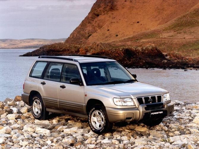 Субару Форестер • 1 поколение (SF) • 1997–2002 Subaru Forester первого поколения, дебютировавший в 1997 году, был спроектирован на платформе модели Impreza. По замыслу создателей автомобиль, ставший одним из первых представителей класса кроссоверов, должен был объединить лучшие качества легковой машины и внедорожника. Forester имел полноприводную трансмиссию с межосевым дифференциалом и демультипликатором. Под капотом автомобиля стоял четырехцилиндровый оппозитный мотор объемом два литра. Атмосферная версия этого силового агрегата имела мощность 122–137 л. с., турбированная — 168–174 л. с. на экспортных машинах и 250 л. с. на автомобилях для японского рынка. Позднее модельный ряд пополнился модификацией с 2,5-литровым «атмосферником», развивавшим 165 сил. Коробки передач — пятиступенчатая «механика» или четырехступенчатый «автомат». В 2000 году Subaru Forester получил незначительные изменения во внешности. Всего до 2002 года было выпущено 520 тысяч автомобилей. Субару Форестер • 2 поко