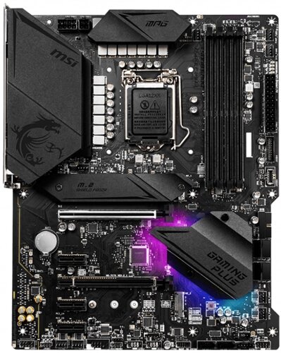 Материнская плата MSI MPG Z490 GAMING PLUS отлично подойдёт для сборки игрового пк. Она имеет 4 слота под память стандарта DDR4 с частотой 2933мгц чего для процессоров Intel будет достаточно с головой. Сама материнская плата довольно хорошо оснащена для своей стоимости в 9400р. Помимо 4-ёх слотов памяти, материнская плата имеет 2 слота PCI-E x16 что позволит установить два видеоадаптера, так же мы сможем позволить себе установить в будущем 2 быстрых накопителя стандарта M2. Помимо всего прочего плата имеет множество радиаторов охлаждения что будет существенным для нас плюсом.