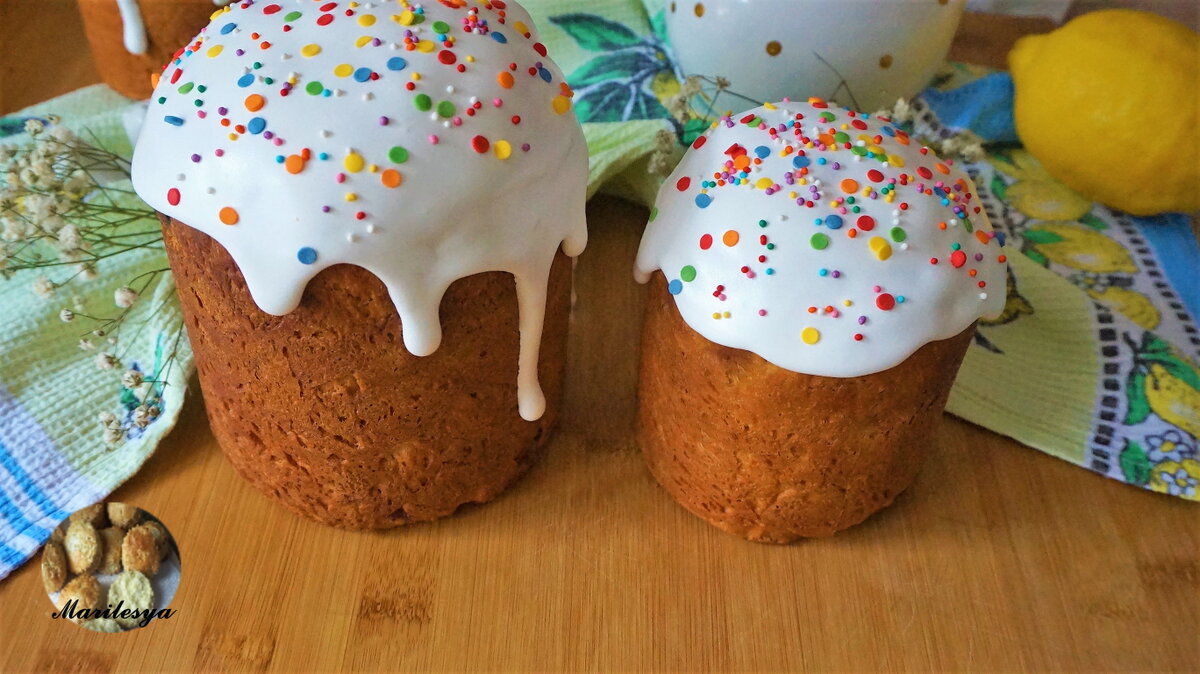 Все мои рецепты находятся на моём YouTube канале "Marilesya Быстро-Вкусно". Если вам понравился этот рецепт, оставьте 👍,комментарий, поделитесь видео с друзьями ! Пишите свои отзывы и предложения внизу в комментариях,смотрите видео рецепт. ⭐КУЛИЧИ Творожные Влажные⭐ Рецепт тесто: 500-550 гр мука, 100 мл жирное молоко, 2 ст.л вода, 150 гр сахар, 150 гр творог пастообразный, 100 гр масло сливочное , 22 гр дрожжи живые, 2 яйца +1 желток ,10-20 гр ванильный сахар, 1/2 ч.л соль, 1 ст.л растительное масло, 200 гр изюм глазурь: 1 белок 125 гр сахарная пудра + 1 ст.л ложка 1 ч.л сок лимона Важно! продукты используйте тёплые или комнатной температуры, расстойку делайте в тёплом месте без сквозняков, расстойку в формах дайте полную (формы лучше все выставить на лист или поднос чтобы было удобнее переносить и не осадить случайно), во время выпечки духовку первые 20 минут не открывать, потом можно прикрыть верх листом бумаги для выпечки чтобы верхушечки не горели.