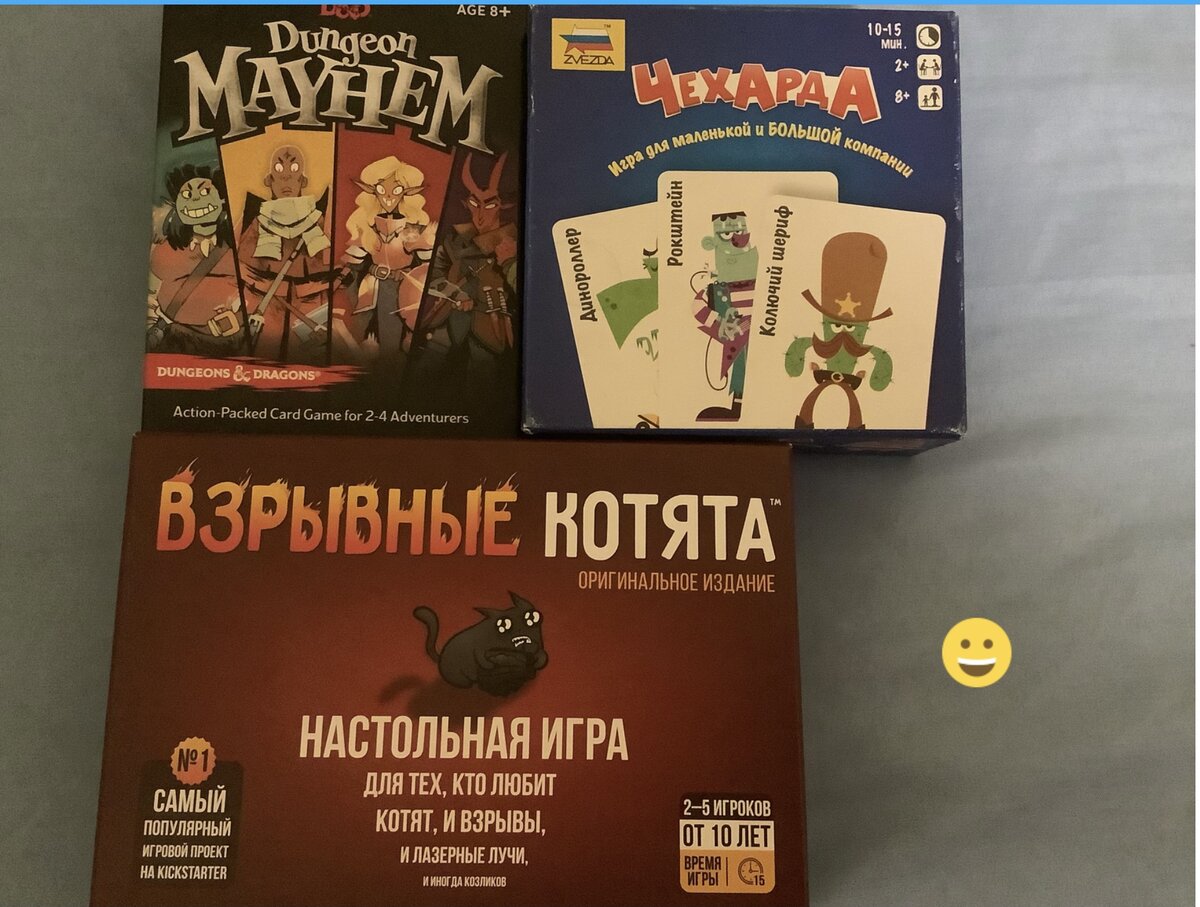 В этом топе я расскажу от 3 самых интересных игра на мой взгляд, которые подойдут для того что-бы сыграть в компании друзей. 3 место: Взрывные котята Всё очень просто, у каждого игрока есть на руке несколько карт действий. В колоде есть такие-же действия, а есть, взрывные котята. В свой ход мы сначала можем сыграть любое число карт, а затем обязаны взять карту с верха колоды. Если действия, забираем на руку. А если взрывной котёнок, сбрасываем карту «обезвредь» или, покидаем игру. Кто последний остался, тот и победил.