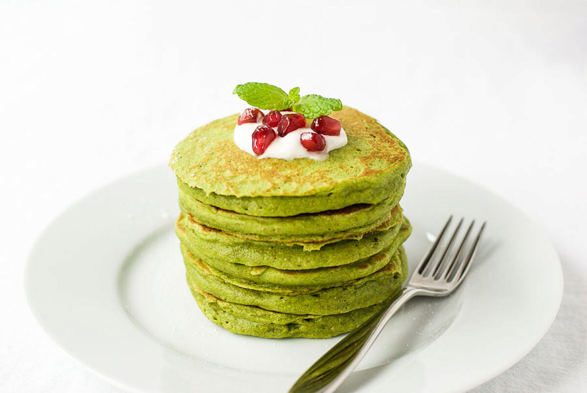 Отличный завтрак - панкейки из шпината и банана Всё ещё думаете чем начать утреннее рабочее утро? Завтра можно обойтись без классической яичницы с сосиской или творога. Почему бы не разнообразить завтрак, например, панкейками из шпината и банана? Итак, чтобы приготовить такой завтрак вам потребуются: дара яиц, пучок шпината, один банан, ванильный экстракт одна чайная ложка, половина чайной ложки разрыхлителя и пшеничная мука 60 г. Готовится блюдо так: шпинат и банан надо вместе пробить в блендере. Затем отделить белки от желтков у яиц. Массу из шпината и банана переложить в миску и добавить к ним желтки и ванильный экстракт. Затем ввести муку с разрыхлителем, смешать. Белки надо взбить до пиков и залить в тесто. Выкладывать массу следует на разогретую сковороду по 2-3 столовые ложки на каждый панкейк. Обжаривать с двух сторон. Полезный шпинат будет надёжно замаскирован, но придаёт панкейкам красочный вид. При этом основа из сладкого бананового пюре отвечает за приятный аромат, естестве