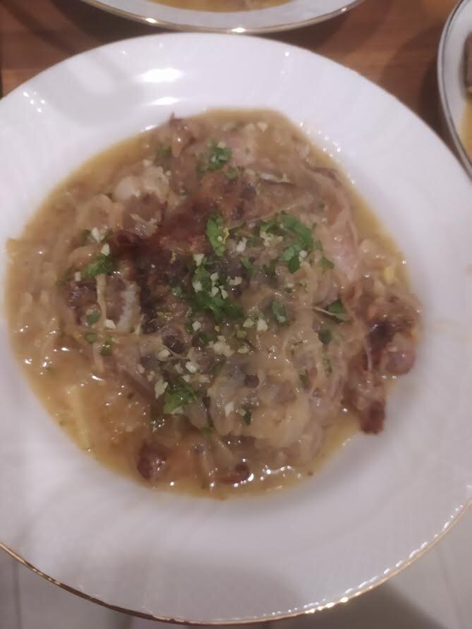 Это фирменное блюдо ломбардской итальянской кухни. ИНГРЕДИЕНТЫ: ПРИГОТОВЛЕНИЕ: Чтобы приготовить рульки по-милански, сначала приготовьте мясной бульон, в котором нужно сварить рульки, затем очистите лук и нарежьте его ломтиками. Нагрейте половину масла в сковороде, добавьте лук и готовьте примерно 5 минут на среднем огне. -сильный огонь, затем влить половину белого вина и варить еще 10 минут. Когда лук подрумянится, удалите лук из сковороды, который вам также понадобится для приготовления рульки, и отложите ее в сторону. Теперь возьмите оссибучи и с помощью ножниц сделайте 3 надреза на соединительной ткани каждого из них, чтобы они не свернулись во время приготовления. Насыпьте муку в форму для запекания и приправьте ее солью и перцем, затем перемешайте ложкой. Посыпьте рульки мукой с обеих сторон и слегка взбейте, чтобы удалить излишки муки. Налейте оставшееся масло в сковороду, в которой вы жарили лук, добавьте сливочное масло и дайте ему растаять, затем поместите рульки внутрь и